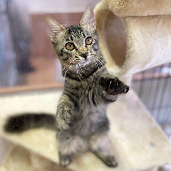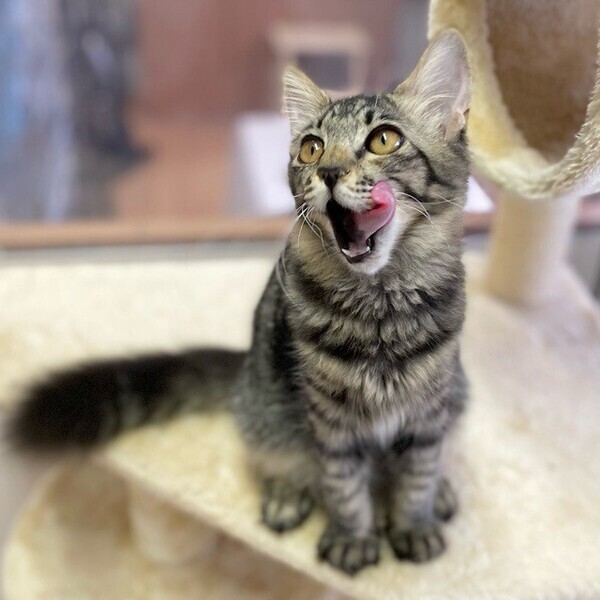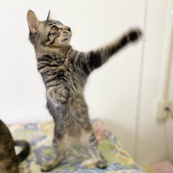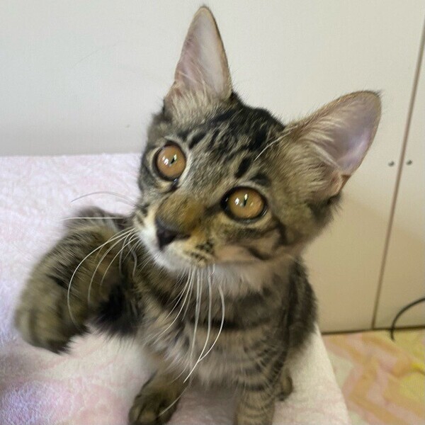 | 特徴(性格など) | ちょこちょこ人の傍に♪な甘えっコ「ポット」ちゃん❤ 隅っこ見つけてはぴゅーーーんと元気に走り込む陽気な女のコ♪ 現在、ドライフードを24時間の置き餌として栄養補給、水分補給のため一日3回パウチを与えています。 <推定誕生日:2022年4月始め> |