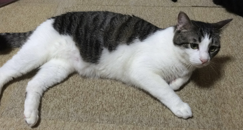 | 特徴(性格など) | 子猫の時に保護し、現在8歳程です。 かなり猫に絡みに行く性格なので、1人がいいタイプの猫ちゃんを飼っておられる方には向かないタイプです。 名前を呼びと返事をしてくれたり、お喋りしてくれます。撫でられるのも好きで、手袋タイプの猫用クシ、ファミネーターなども嫌がりません。 掃除機、子供は苦手で掃除機をかけだすと一目散に逃げて隠れてしまいます。 |
