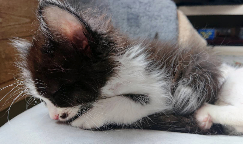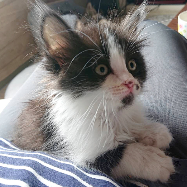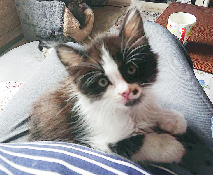 | 特徴(性格など) | 長毛の黒白猫です。 生後1か月半(2022/6/1現在) 抱っこが大好な甘えん坊さんです♪ エイズ白血病陰性 ワクチン済み・駆虫済み・マイクロチップ挿入済みです。 |