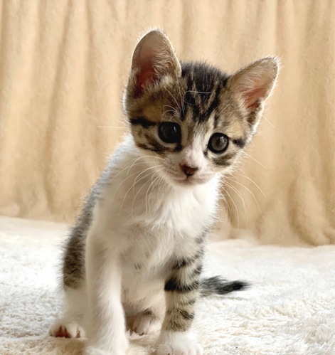 | 特徴(性格など) | 【仮名】れんたろうくん 【性格】丸顔&クリクリおメメのれんたろうくん♪ まあ自画自賛ですがバリカワですよ♪ 男の子らしいヤンチャなコで 遊びも怖いもの知らずでハラハラです(笑) でも眠くなるとそばにくっついてきますので ネコ可愛がりしたいヒトもご安心下さい(笑) ぜひ兄弟or同世代とのペアでお迎え頂きたく 思っていますのでよろしくお願い致します♪ ※1ピキ譲渡不可 |