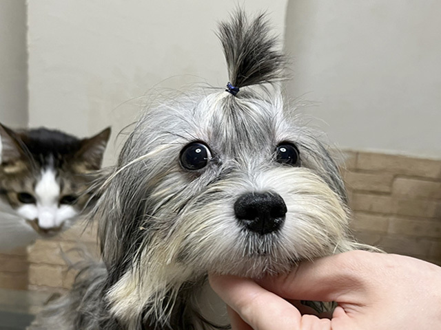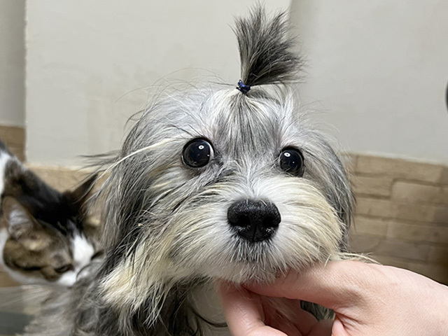 | 特徴(性格など) | ■ 基本情報 ・管理番号 【220303-15】 ・犬種・性別・名前(仮) 小型mix ♀ リディ ・年齢・体重 推定4カ月(5/24現在) 体重 2.3kg ・特徴 マルチーズ、シーズーなどのミックスでシーズーよりの毛質で長毛です。 ・性格 少し慎重派の女の子です。 ■ 暮らしについて ・日常過ごす場所 室内サークルで過ごしています。 ・食事 プレミアムフードに粉ミルクとヨーグルトなどを足して与えています。 ・トイレ 現在トレーニング中です。 ・散歩 これから練習します。 ・お留守番 目を離す時、留守番時はイタズラをするので、必ずサークルに入れてください。 ・外出 車酔いします。 ・お手入れ 問題なく普通にできます。 ・他犬との関係 しつこくします。相手により注意が必要です。 ・人との関係 これから性格が出来上がってくる段階のため変化します。 今のところはちょっと怖がりで、甘えん坊です。 ・お願いしたいこと 子犬なのでおおらかなお気持ちでお迎え下さい。 これから、躾などが必要になります。 ■ 医療管理について(実施日) ・混合ワクチン 〇 ・狂犬病予防注射 〇 (5/21) ・フィラリア抗原検査 ・不妊手術 生後半年を目安に実施予定 ・マイクロチップ 近日中に実施予定 ・健康チェック 〇 ・スケーリング 子犬につき必要なし ・便検査 〇 ・その他の医療措置 駆虫済み【プロコックス、ドロンタール、フラジール】 ・必要な継続医療 特になし。 5~6ヶ月の頃になったら不妊手術が必要です。市川市の協力病院で実施。 ・現在の一時預かり先 東京都江東区 ・預かりスタッフ カコ&あや ・預かりブログ 晴れ ときどき 仮ママ(2022/3/3~) ・https://ameblo.jp/pinky12/ 江戸っ子の仮兄妹 ・https://ameblo.jp/ayapcd/ ・引取時の様子 ・http://chibatarianna.jugem.jp/?eid=7549 |