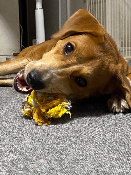 | 特徴(性格など) | 保護当時は仔犬で社会化不足による慎重な一面がありましたが、 トレーニングを続け、今では犬付き合いの上手な若犬となり、 とても良い意味で陽気で優しく、お茶目で大胆で遊び好きな、とても素直な子となりました。 お散歩はリードの引きが強いです。 室内外では脱走しないよう細心の注意が必要です。 無駄吠え、要求吠えはほぼ無いです。 今現在、夫婦と小学生の子供2人、4ワンコと生活をしています。 序列を見極め、自分の立ち位置を読み、頼りになる先輩犬に甘えています。 まだ幼さがあり、イタズラ、破壊、失敗、室内トイレの失敗など、たくさんしますので、やって良いこと、やってほしく無いことをきちんと伝え、 この成長期をお互い楽しい時間を共有しようと前向きにとらえ、明るく楽しく課題を乗り越えていけば笑いが絶えないと思います。 逆に完璧を求める方、理想型がはっきりしている方には不向きです。 お留守番は苦手です。 長時間お留守番のある方には不向きです。 |