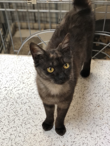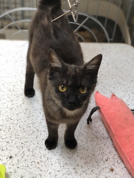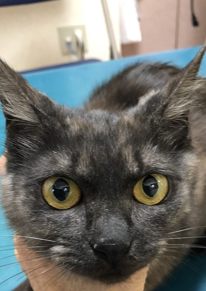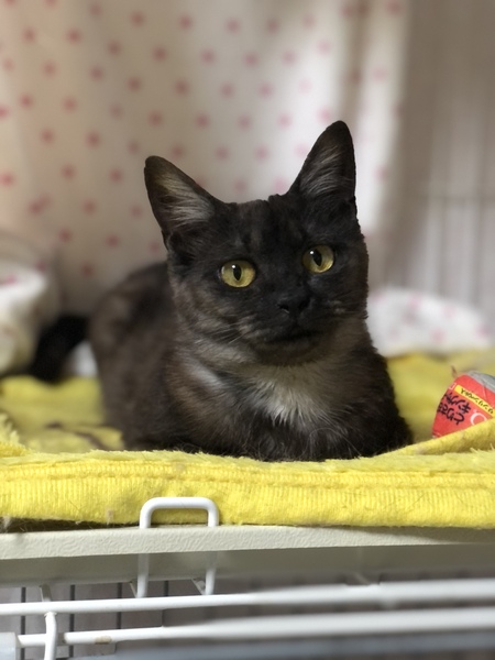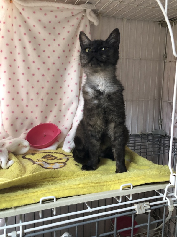 | 特徴(性格など) | 仮名、クレンちゃん 性別、女の子 年齢、獣医推定7.8ヶ月 特徴、ブラックスモークMIX。 まっすぐ尻尾。オレンジアイ。 性格、ベタベタの甘えた。抱っこ好き。 その他、避妊手術済。便検査済。 ブロードライン済。 3種ワクチン接種済。 |