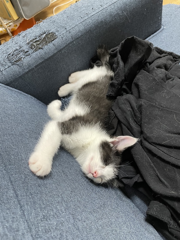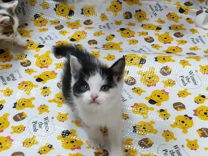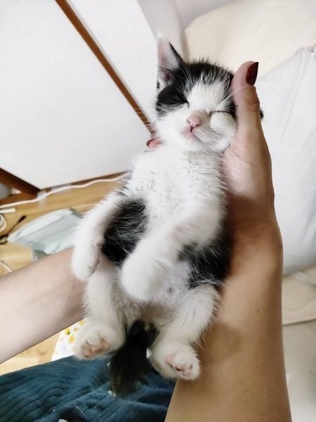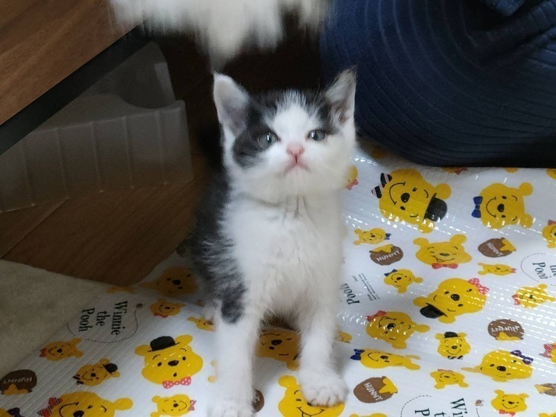 | 里親募集する理由 | 6月3日 息子と散歩中に道路の真ん中で車にひかれそうになっているところを保護しました。 すぐ獣医さんに見ていただき、生後1ヶ月程度の雄猫ちゃんと判明しました。 我が家には既に猫2匹、生後8ヶ月の息子がいるため、飼育が難しいと判断し里親さんを探す事にしました。 |