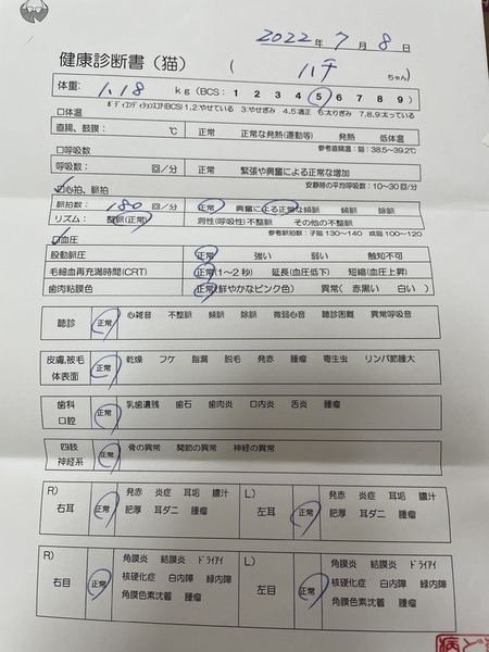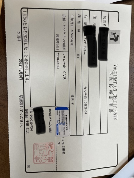 | ワクチン | 済 | 不妊去勢手術 | 未 |