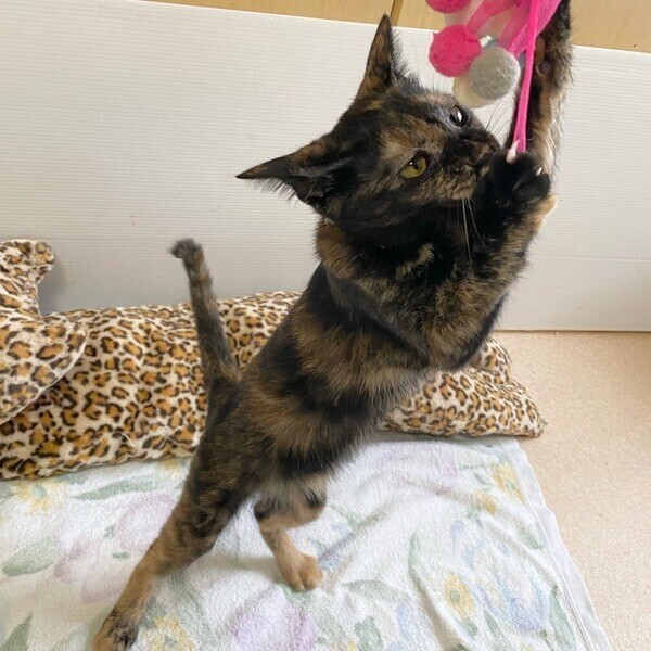 | 特徴(性格など) | おっとりマイペース「ピサロ」ちゃん❤ 陽気な甘えっコ♪ 小さな身体でちょこちょこ元気に遊ぶ♪ 遊びに夢中になって、ストップかからず慌てて我に返る⁈でふと立ち止まり、じっと周りを観察する、な利発で天然ちゃん❤ 現在、ドライフードを24時間の置き餌として栄養補給、水分補給のため一日2回パウチを与えています。 <推定誕生日:2022年3月始め> |