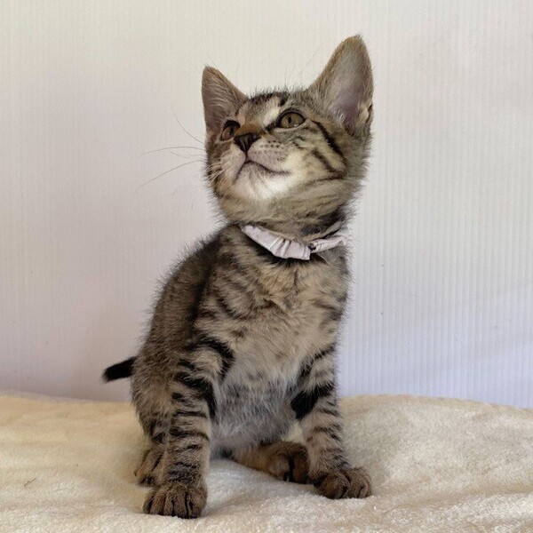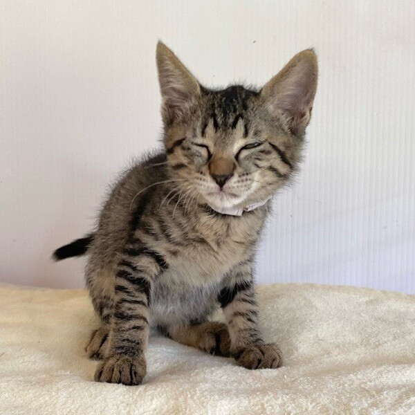 | 特徴(性格など) | 好奇心旺盛な「アウディ」ちゃん❤ いつも元気に遊んでは隅っこ爆睡♪ 毛布などコシコシ、玩具カシカシのマイペース♪ 現在、ドライフードを24時間の置き餌として栄養補給、水分補給のため一日3~4回パウチ&離乳食を与えています。 まだ月齢も小さく、一日1回の体重測定により減少している、などの場合は哺乳瓶で離乳食の強制給餌を行っています。 <推定誕生日:2022年4月始め> |