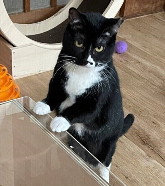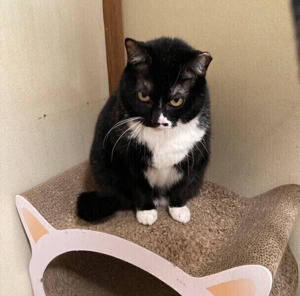 | 特徴(性格など) | ◆くつしたちゃん 靴下を履いているような可愛い足元が名前の由来 ○東京都内の多頭飼い崩壊現場から保護されました。 ○保護の様子は「坂上どうぶつ王国」にて取り上げていただきました。 ○推定7〜8歳くらい(2022年4月時点)の女の子です。 ○身体の色は、背中がほぼ黒、お腹は白く、尻尾はまっ黒&まっすぐです。 〇くつしたを履いているような可愛い足元が名前の由来です。 ○大人しくて控えめな女の子で、他の猫に自分からケンカをふっかけるようなことはしません。 ○人に自分から近づいてくることは少ないですが、人には興味津々なようで、よく人を目で追っています。そのため、よく目が合う可愛い女の子です♪ ○撫で撫では、最初はビクっとなりますが、気持ち良さそうに撫でさせてくれます。 ○お家の子になったら、甘えん坊ちゃんになると予想しています。 ○ 時間をかけてゆっくり仲良くなってくださる里親様をお待ちしています。 ○YouTubeにも動画を上げています。こちらもご覧下さい。 「くつした」 https://youtube.com/shorts/worgVdeseIk ★ワクチン接種済み、不妊手術済み。 ★猫エイズ、猫白血病ともに陰性。 ☆単身のかたはご相談ください。 |