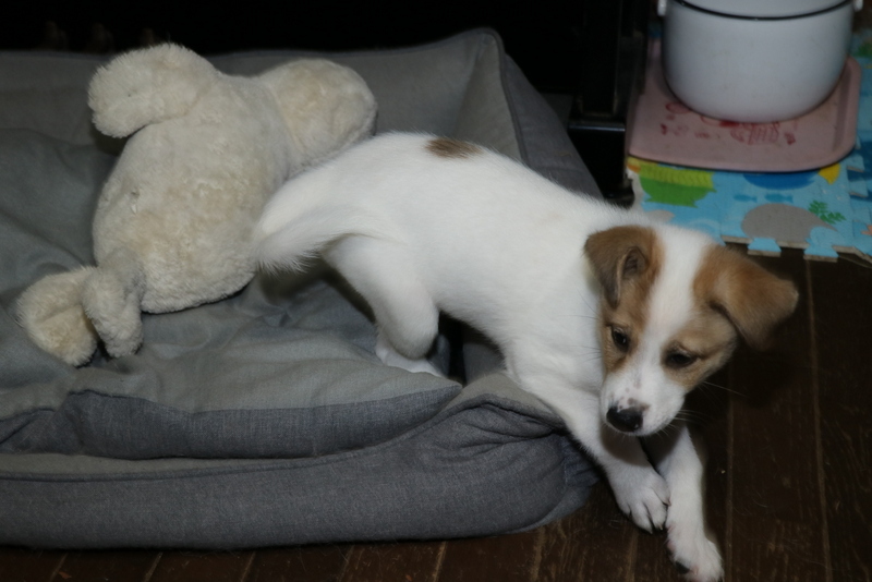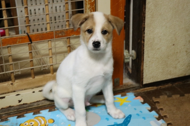 | 特徴(性格など) | 中型犬になると思われます。 白毛に茶色。 人にも犬にもjフレンドリーです。 元気な甘えん坊です。 健康診断済み トイレは特訓中です。 |