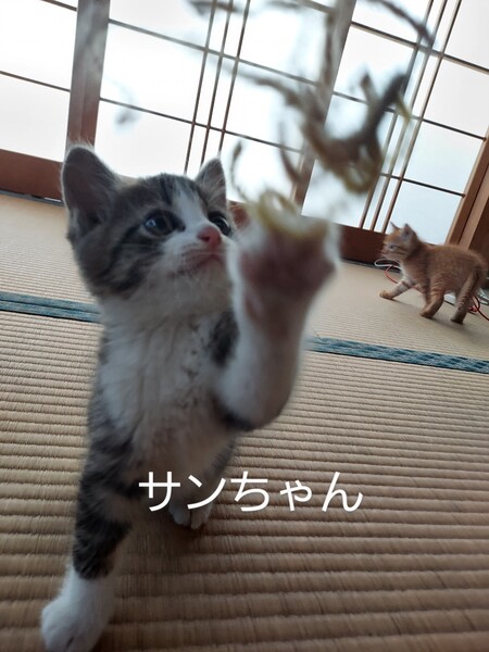 | 特徴(性格など) | アル君 茶トラ♂ 好奇心旺盛 くりくりお目々 若干センターパーツ スー君 茶トラ♂ 大物感漂う 一番警戒せず猫ベットを占領してのびのびしています サンちゃん ハチワレ♀ 兄弟とよく遊ぶ唯一のお姫 アンニュイなお顔 どの子もとても元気で食欲旺盛 食事は離乳食パウチがメインでウエットフード、カリカリ食べます。ミルクもまだ好きです。 猫砂でおトイレできています。 母猫は白毛に灰色シャムMIX長毛種のようです。 |