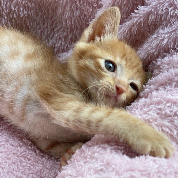 | 特徴(性格など) | お茶目な「トニック」くん❤ ちっちゃな時から人の手で育てられてるので、陽気な甘えん坊♪ いつも兄弟たちとコロコロ遊んでは、バタンの爆睡♪ 現在、ドライフードを24時間の置き餌として栄養補給、水分補給のため一日4回パウチ&離乳食を与えています。 一日1回、体重測定を行い、減少している場合、哺乳瓶での離乳食強制給餌を行っています。 <推定誕生日:2022年4月中頃> |