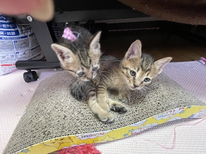 | 特徴(性格など) | 黒猫ちゃん オス 2匹 キジ猫ちゃん オス 2匹 キジ猫ちゃん メス 1匹 めちゃくちゃ元気な子 おとなしい子がいます。 |
