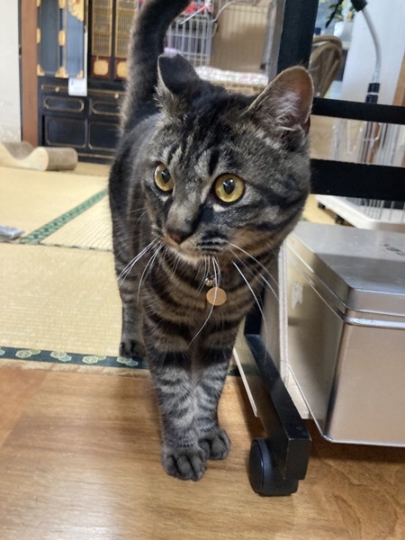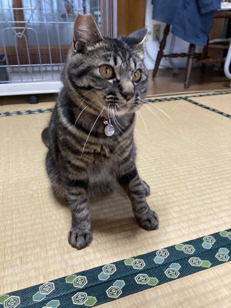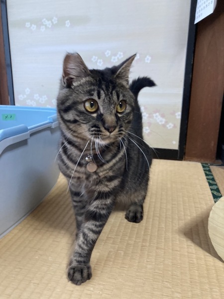 | 特徴(性格など) | とても元気で子猫全開です。我が家の保護猫さんたちと走り回っています。食欲等も問題ありません。 我が家に来たときは、とても人見知りさんで、音に対して敏感でしたが、だんだん掃除機などの音にも慣れ、我が家の保護猫たちの愛にまみれて、くつろぐようになりました。先輩猫さんたちに遊んで遊んでと催促いたします。はっきりとした模様でこれぞキジトラさんという感じです。目の色もオレンジに近く、ベースのお色はシャンパンゴールドのような色合いでルックスも可愛いです。足の肉球も真っ黒です。 夜も電気が消えてしまえばしっかり大人しく眠ることができます。トイレも完璧。鳴き声はまだまだ子猫さんです。体重は現在3.3キロ。オスにしては小ぶりで可愛いです。医療処置も済ませているので安心です。 |