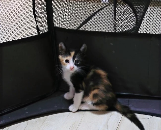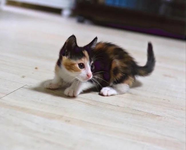 | 特徴(性格など) | 2022年4月生まれ。 兄弟の中で唯一の三毛猫で、兄弟の中で少し遅れて生まれてきたためか、体が少し小さめです。 でも遊ぶことが大好きで、お気に入りの魚のおもちゃは誰にも譲らない、とても元気な女の子です。 だっこ○、爪切り○、膝のり○です。 |