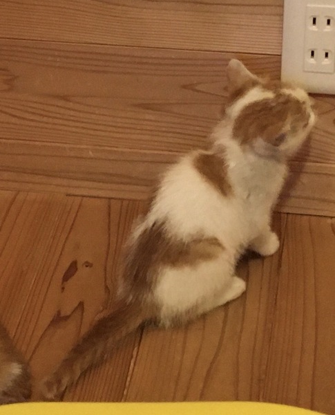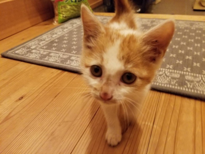 | 特徴(性格など) | とにかく活発で好奇心旺盛なので慣れると冒険したり、猫じゃらしを獲物と見立てて遊んだりします。窓際が好きでよくそこで横になったりしてます。大きな音などが苦手なので優しく声をかけて欲しいです。 色は茶白で尻尾が長いのがチャームポイントです。 |