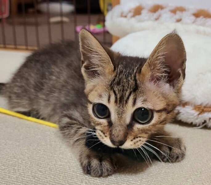 | 特徴(性格など) | ◆四郎くん やんちゃでスリゴロ! 子猫らしい甘えん坊 ●月齢の小さな子猫は、以下の条件についてご了承の上で応募をご検討下さい。 ◆お留守番の少ないご家族、 ◆横浜市青葉区内もしくは近郊にお住いのご家族、を希望します。 ◆2匹でお迎えくださるご家族を優先いたします。 ◆小さなお子様のいるご家庭は状況によりお断りする場合がございます。 ◆高齢者のみのご家族からの子猫のお申し込みはお受けしていません。 〇群馬の軽自動車閉じ込め飼育から保護されました。 〇生後2か月ぐらい、体重880g(2022年6月上旬時点)のキジトラの男の子です。 〇しっぽは真っすぐです。 〇ヤンチャで元気いっぱいの男の子。 〇食欲旺盛、何でもよく食べます。 〇大きなお目目がチャームポイントの、スリゴロ甘えん坊です。 ☆ワクチン接種1回済み、不妊手術は成長と体調をみて実施予定です。 ☆猫エイズ、猫白血病ともに陰性。 ☆★☆★☆★☆★☆★☆★☆★☆★☆★☆★☆☆★☆★☆★☆★☆★☆★☆★☆★☆ 6/5Youtubeで開催の「子猫のバーチャル譲渡会2022」に出場しました。 「HGA48犬猫ニュースチャンネル」 https://youtu.be/CQpYXkex44M 40匹ぐらいの子猫をご紹介いたしました! 可愛い子がいっぱい、ぜひご覧ください。 ☆★☆★☆★☆★☆★☆★☆★☆★☆★☆★☆☆★☆★☆★☆★☆★☆★☆★☆★☆ |