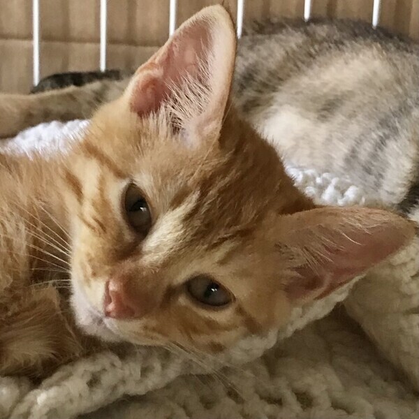 | 特徴(性格など) | ◆はちこちゃん 人馴れ完璧な構ってちゃんの茶トラ女子 ●月齢の小さな子猫は、以下の条件についてご了承の上で応募をご検討下さい。 ◆お留守番の少ないご家族、 ◆横浜市青葉区内もしくは近郊にお住いのご家族、を希望します。 ◆2匹でお迎えくださるご家族を優先いたします。 ◆小さなお子様のいるご家庭は状況によりお断りする場合がございます。 ◆高齢者のみのご家族からの子猫のお申し込みはお受けしていません。 〇群馬の軽自動車閉じ込め飼育から保護されました。 〇生後3か月ぐらい、体重1.0kg(2022年6月上旬時点)の茶トラの女の子です。 〇尻尾は細長くて真っ直ぐです。 〇元気いっぱい、おしゃべり好きで鳴いて自己主張強めな構ってちゃん。 〇人馴れ完璧で人が近寄るとお腹ゴロンと見せたり、肩に乗ってきたり、とにかく人が大好きでぐいぐい来ます。 〇抱っこも大好き。寝ていると自分から腕の中に入ってきます。 〇同じく里親募集中の「ごこ」ちゃんとはとっても仲良しです。 〇元気にすくすく育っています。 ☆ワクチン1回済み。 ☆ 猫エイズ、猫白血病ともに陰性。 ☆不妊手術は成長と体調を見て実施予定です。 ☆★☆★☆★☆★☆★☆★☆★☆★☆★☆★☆☆★☆★☆★☆★☆★☆★☆★☆★☆ 6/5Youtubeで開催した「子猫のバーチャル譲渡会2022」に出場しました。 「HGA48犬猫ニュースチャンネル」 https://youtu.be/CQpYXkex44M 番組内で40匹ぐらいの子猫をご紹介いたしました! 可愛い子がいっぱい、ぜひご覧ください。 ☆★☆★☆★☆★☆★☆★☆★☆★☆★☆★☆☆★☆★☆★☆★☆★☆★☆★☆★☆ ○6/19(日)開催の譲渡会に参加予定! 下の要項をお読みいただき、ぜひ会いに来てください♪ ☆★☆★☆★☆★☆★☆★☆★☆★☆★☆★☆ ~6月19日(日)市ヶ尾にて譲渡会開催!~ ◎場所・・「東急ドエル市ヶ尾プラーザビル2階集会場」 神奈川県横浜市青葉区市ヶ尾町1154-2 田園都市線「市ヶ尾」駅西口より徒歩約2分 ◎日程・・6月19日(日)(雨天決行) ◎時間・・13時から16時(受付は15時30分まで) (会場に利用可能な駐車場はございません。近隣のコインパーキングをご利用ください。) *3密対策のため、当日12時30分より全時間分の整理券を配布いたします。整理券枚数には限りがございますので、上限に達した場合はご入場できません。 *参加の際は、マスクの着用、アルコール消毒のご協力をお願いいたします。 *当日は検温の上、体温が37度以上の方はご参加いただけません。 *混雑状況により、中止させていただく場合がございます。 ※参加予定の犬猫は体調により参加できない場合があります。ご了承ください。 ☆★☆★☆★☆★☆★☆★☆★☆★☆★☆★☆ |