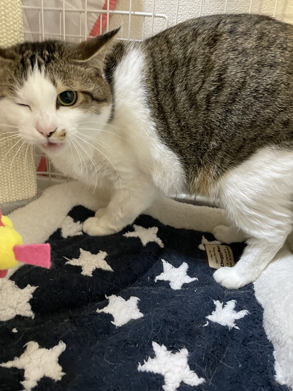 | 特徴(性格など) | まだ完全には人慣れしていません。 手で触れますが抱っこ出来ません。 空海ちゃんと兄弟で一緒にゲージにいます。 初めは、ちゅーるや、歯ブラシを使って スキンシップを取っていました。 徐々に、ヴーヴー言わなくなり、 指を近づけると匂いを嗅いでくれます。 手に水を付けて顔を洗っています。 綺麗好き?のようです。 根気よく向き合ってくれる方に里親さんになって欲しいです。 健康状態は、良好です。 ドライフードに鰹節をトッピングして食べています。 体重6.0キロ ☆去勢手術済み ☆3種混合ワクチン接種済み ☆猫エイズウィルス 陰性 ☆猫白血病ウィルス 陰性 ☆ノミダニ駆除 ☆血液検査異常なし ☆便検査異常なし |