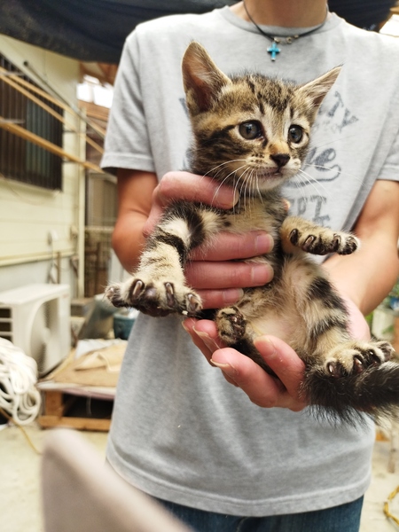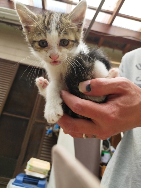 | 里親募集する理由 | 知り合いの自宅付近にて、野良猫ちゃんが仔猫を産みました。 このままでは成長した場合メスなので、また繁殖を繰り返し増えてしまいます。 なので、家族として大切にして下さる方に出会えればと思っております。 4匹メス仔猫ちゃん産まれて3週間 白キジ2匹 黒トラ柄2匹 今はキャットフード カルカン ミルクなどを食べています。 健康状態 元気すぎるぐらいです♪ |