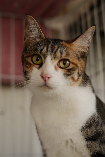 | 特徴(性格など) | 仮名: あやめちゃん、 メス 毛色: 三毛 性格: 人馴れはしていますが怖がりのために初めて会う人には緊張してしまいますが、同室の猫とは仲良く遊んでいます。 高いところに登るのが好きで、キャットタワーの一番上から下を見ているのが好きなようです。 釣り竿型のおもちゃや蹴りけりなどがお気に入りで、良く遊んでいます。 新しい環境になれるまで時間がかかると思いますが、慣れたらお腹を見せてくれます。 駆虫済 ワクチン済 避妊手術済 猫エイズ・白血病ウィルス検査はともに陰性 |