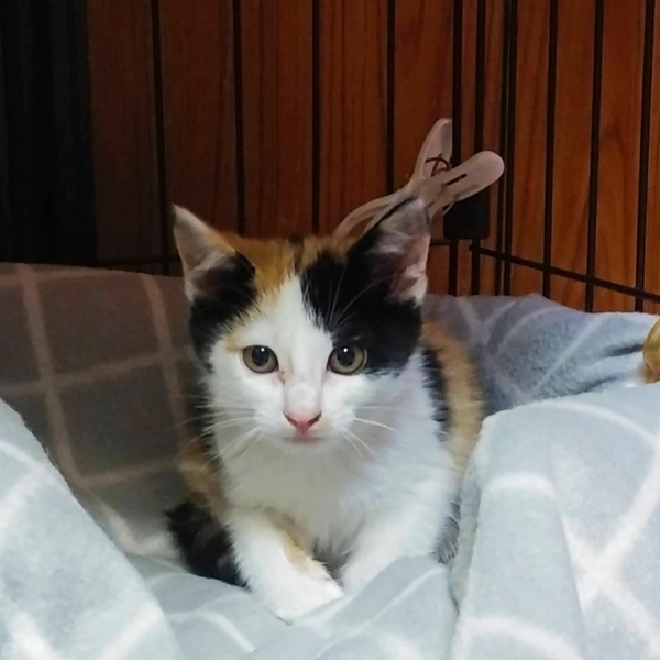 | 特徴(性格など) | 兄妹の中でたったひとりの女の子 慎重なちらしちゃんは4兄妹の中でもいちばん最後の保護になりました。 いちばん警戒心が強く 今でも最初はシャー言っちゃいますがそこは子猫ですから遊んだり手からのおやつですぐに仲良しになれるはずです。 保護までの状況や保護部屋での様子は Instagram「pekokuru2016」でご確認ください。 https://www.instagram.com/pekokuru2016 |