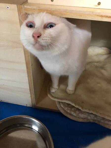 | 特徴(性格など) | ◆サファイアちゃん 青くてキレイな目が名前の由来 ○東京都内の多頭飼い崩壊現場から保護されました。 ○保護の様子は「坂上どうぶつ王国」にて取り上げていただきました。 ○推定10〜11歳くらい(2025年4月時点)の女の子です。 ○真っ白で小顔、青くてキレイな目、真っ白で長い尻尾を持つ美猫です。 ○仲良くしようとすると威嚇しますが、ちゅーるがあると仲良くなれる子です。 ○現在はご機嫌な時に少しだけ撫でたり触ることができるのみですので、お家の子になるには時間が掛かると思います。もしかしたらずっと慣れない可能性もあります。そんなサファイアを理解し、受け入れてくださる里親様をお待ちしています。 ○ちゅーると同じくらい好きなのが、ウエットごはんの食いしん坊さんです。 ★ワクチン済み、不妊手術済み。 ★猫エイズ、猫白血病ともに陰性。 ☆単身のかたはご相談ください。 ★★お見合いを設定することも可能です。まずはお申込みください★★ |
