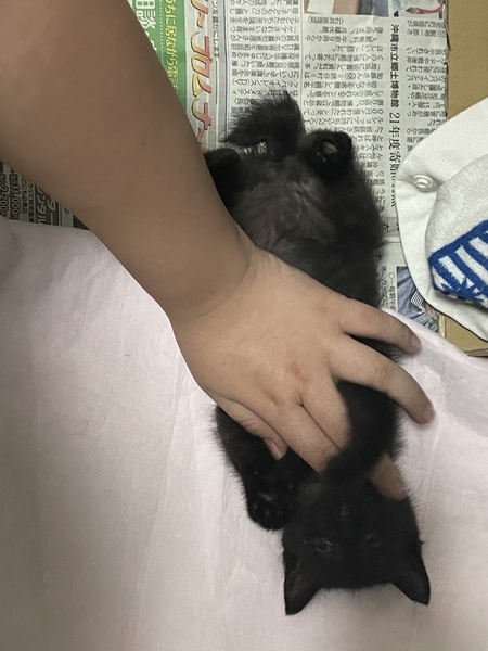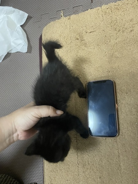 | 特徴(性格など) | 黒子猫 とても元気で食欲旺盛! カギ尻尾の子猫 |