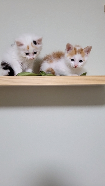 | 特徴(性格など) | めずらしい長毛のふわふわ三毛ちゃんはおっとりさん。 茶しろくんは活発なとても人懐っこい子猫です。 |