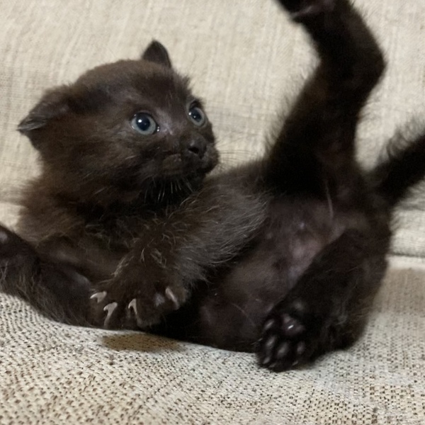 | 特徴(性格など) | 猫に詳しくないのでこの毛色の呼び名があるか分からないのですが、クロネコに近いこげ茶の子です。 近所の家の庭で生まれた子ですが、先日にゃあにゃあ泣きながら走ってきたので思わず受け止めてしまいました。大人の猫に追いかけられていたのかもしれません。 とても人懐こい子です。 |