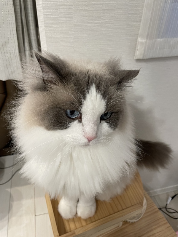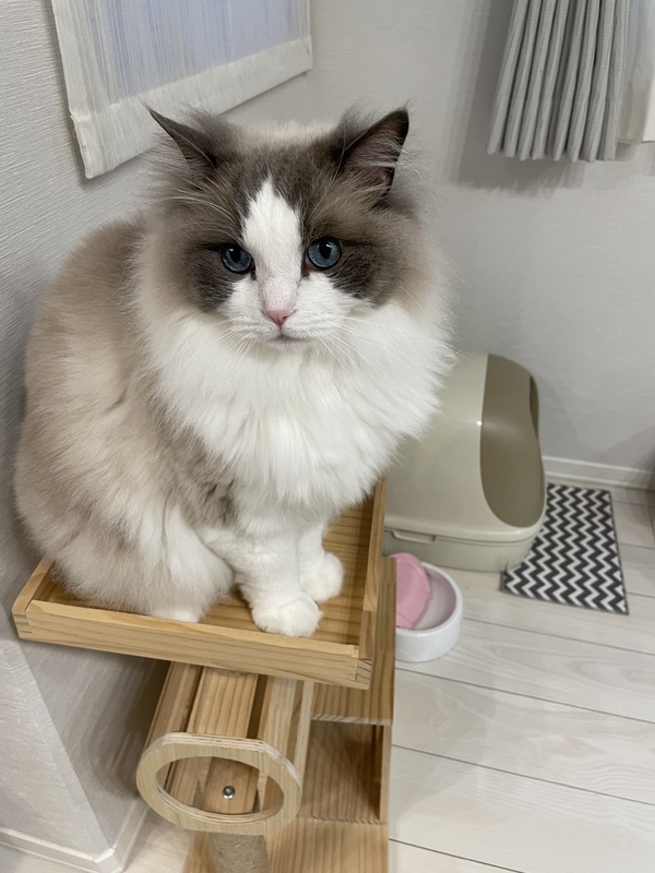 | 特徴(性格など) | ラグドールのブルーポイントになります。 大型のネコなので、6キロ程度あり健康状態は良好です。 人懐っこく、壁などを引っ掻いたりはしません。 |