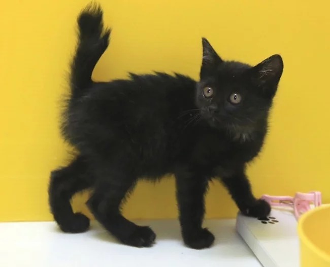 | 特徴(性格など) | 2022年4月生まれ。 4s76、4s77と兄弟(姉妹、兄妹、姉弟)です。 つぶらな瞳とはまさにこの子のためにあるような、かわいい瞳の黒猫の女の子です。首のしただけ灰色でそれもまたワンポイントが効いていておしゃれに見えるのが黒猫の魅力です。 でもこの子の一番の特徴はしっぽです。まるで蟹の手のように先っぽがパカッっとしていて、短いですが個性的で愛らしいです。 だっこ○、爪切り○、膝のり○です。 |