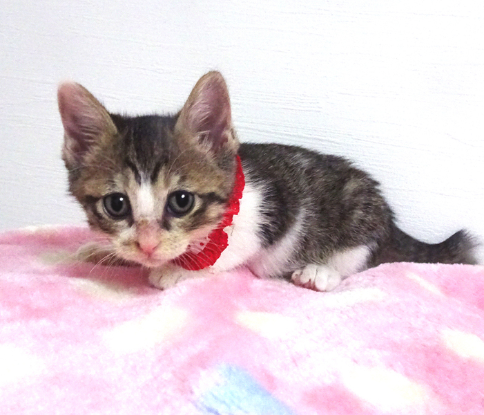 | 里親募集する理由 | 動物愛護センターから、乳飲み子を引取り、養育しました。 殺処分を免れたので幸せになってもらいたいと思います。 走っても大丈夫なペット可のお住まいで、まだ小さいため猫だけのお留守番が長時間でないご家族を募集しています。 |