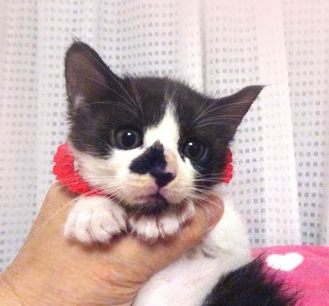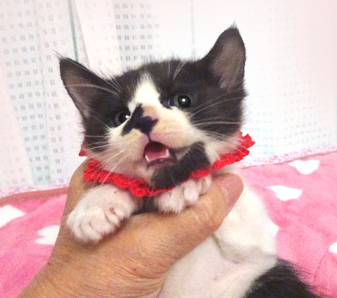 | 特徴(性格など) | 【猫の仮名】 アンちゃんん (担当 松嶋) 【毛色・柄】 黒白かぶき柄、長いシッポ 乳飲み子から育てたので大変人慣れしています♪ 人に育てられたので人間を親だと思っています。 小さくてもトイレのできる賢い子です♪ 猫を飼うのが初めての方でも大丈夫です♪ 体重が700gになったらお届けします。 健康状態良好 ●ウイルス検査(エイズ・白血病)兄弟のピノくんで検査 陰性(ご希望により検査可) ●ワクチン 1回 ●蚤取り 1回 ●駆虫 2回 ●検便 2回 ●シャンプー 2回 走っても大丈夫なペット可のお住まいで、家族の一員として生涯大切にして下さるご家族を募集しています。 まだ小さいので猫だけのお留守番が長時間でないご家族を希望します。 |
