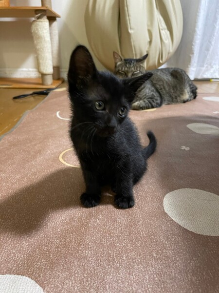 | 特徴(性格など) | 性格はまだ分かりませんが、元気に走り回っています♪ 遊んで、疲れて、スイッチ切れて寝る、の繰り返し。見ていて飽きません(^^) ご飯もよく食べてますよ! ロンくん、めちゃくちゃかわいいので、ぜひ会いに来てください。現在600-700gです。 ・ノミダニ回虫駆除済み ・エイズ(−)白血病(−) ・3種混合ワクチン接種予定 |