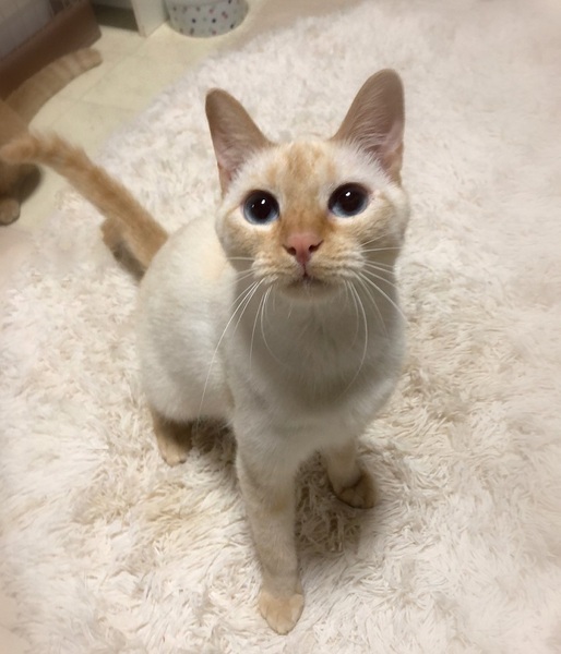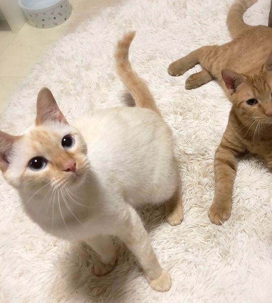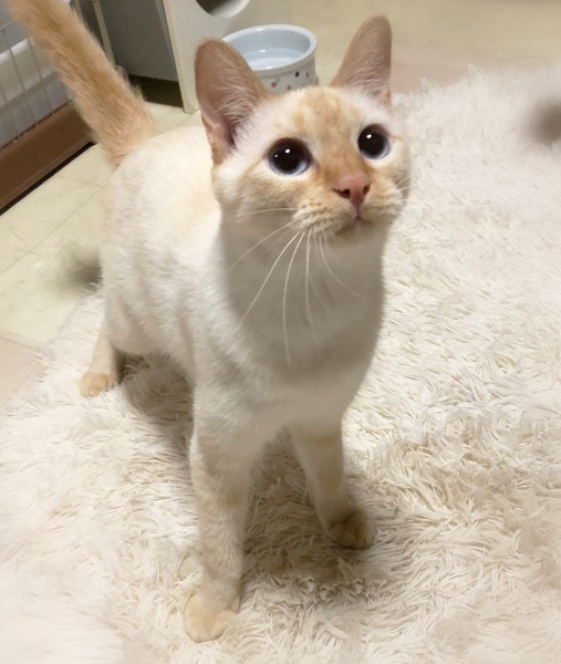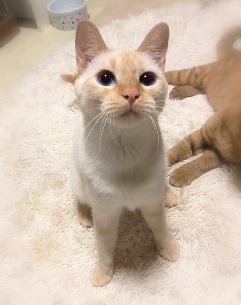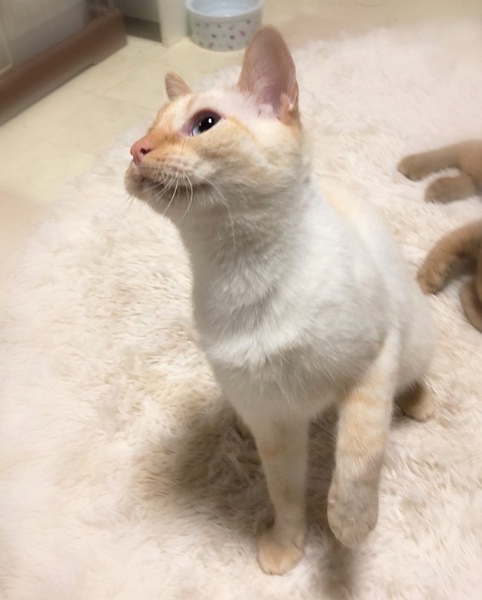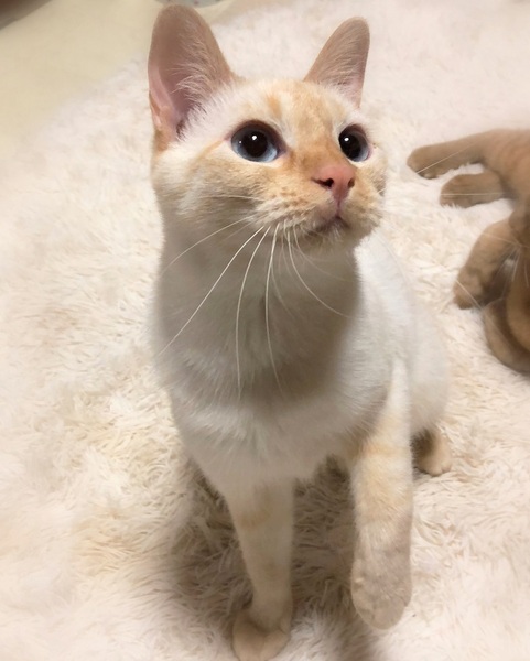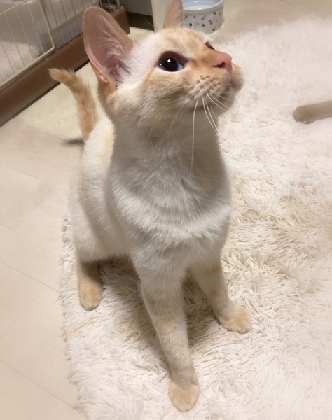 | 特徴(性格など) | 白×肌色・明るい青の瞳の女の子 環境に慣れるまで時間が必要です。 控えめな性格ですが、オモチャを出すとわくわくした様子で一生懸命追いかけます。 撫でられるのが大好きで、すぐにゴロゴロふみふみします。 |