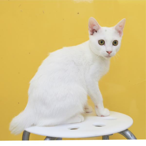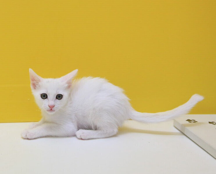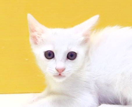 | 特徴(性格など) | 兄弟同様頭の上に少しだけ黒い毛が生えていますが、4s7より少しだけ頭の黒い毛が多いです。お鼻も肉球も綺麗なピンク色。 活発で積極的。だっこも爪切りも膝もへっちゃらでなすがままです。 尻尾は先の方でほんの少し緩やかーにカーブしていますが、ほぼまっすぐ。 だっこ○、爪切り○、膝のり○です。 FeLV陽性 現在の体調は安定しています。 |