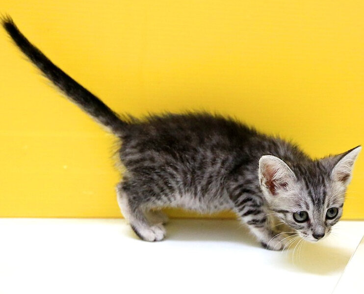 | 特徴(性格など) | 2022年4月生まれ。 小柄ながら力強いサバトラの女の子。4s11、4s13、4s14と兄弟(姉妹、兄妹、姉弟)です。 顔は左右均等なサバトラ模様が綺麗で、お腹は斑点模様になっています。 ぽけーとした顔をしていますが、たまに俊敏に動きます。しっぽも綺麗なサバトラでまっすぐピンと伸びています。 だっこ○、爪切り○、膝のり○です。 |