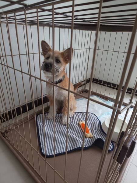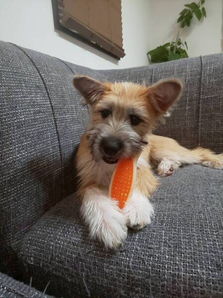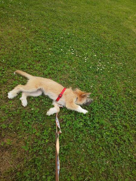 | 特徴(性格など) | テリア風なもしゃもしゃ毛が可愛いリーベちゃん。生後4カ月で体重は5kgほど。将来は中型犬になります 明るく陽気で人も犬も好き。お散歩は得意。でもまだ子供で、病院や知らない場所では緊張しておとなしくなります。 寂しがりでケージにひとりで入っているのは苦手で出たがります。室内フリーにしていると満足。 |