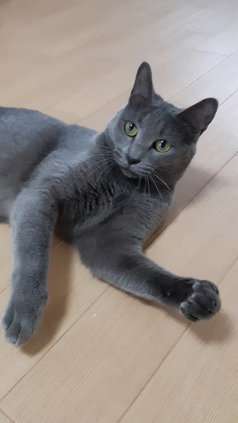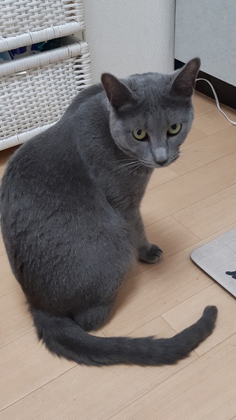 | 特徴(性格など) | 健康状態良好 猫エイズ・白血病 陰性 体重約4.0kg、細身の筋肉質 人見知り気味なので、最初はシャーシャーいうかもしれませんが、本性はベタベタの甘えん坊。運動神経はバツグン、猫じゃらしなどで活発に遊びます。おっとりマイペースな性格で、他の猫とも上手に過ごせます。 グレー1色ではなく、よく見るとしっぽに濃淡のしま模様があります。 |