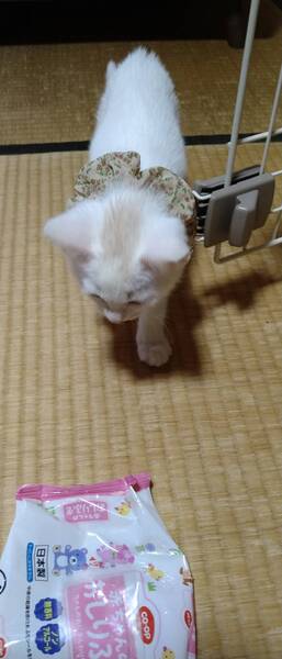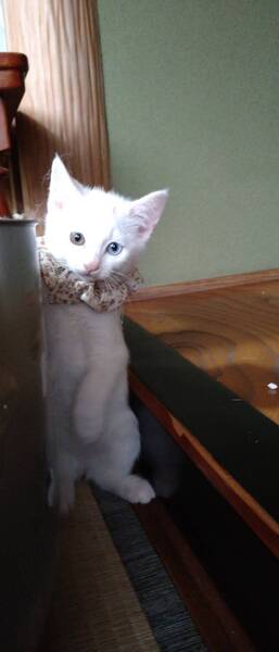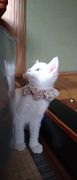 | 特徴(性格など) | オッドアイで少し人見知りな性格の女の子です。他の子と寝たがる寂しがり屋さんです。猫風邪の症状はほとんどなく、目の炎症も、鼻水もありません。 | ||