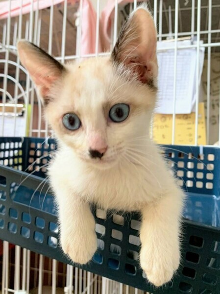 | 特徴(性格など) | ◆たまきくん 人とも猫とも仲良しの白シャム風の男の子 ●月齢の小さな子猫は、以下の条件についてご了承の上で応募をご検討下さい。 ◆お留守番の少ないご家族、 ◆横浜市青葉区内もしくは近郊にお住いのご家族を希望します。 ◆2匹でお迎えくださるご家族を優先いたします。 ◆小さなお子様のいるご家庭は状況によりお断りする場合がございます。 ◆高齢者のみのご家族からの子猫のお申し込みはお受けしていません。 ○沖縄県内にて保護されました。 ○推定2ヶ月くらい(2022年6月中旬時点)の白シャム風の男の子です。体重は840g(2022年6月4日時点)です。 ○尻尾は黒く、先が鍵しっぽになっています。 ○人懐っこい甘えん坊です。 ○人とも猫とも仲良しです。 ○元気にすくすく育っています。 ★ワクチン1回接種済み。 ★猫エイズ、猫白血病ともに陰性。 ★不妊手術は成長と体調を見て実施予定です。 ◯YouTubeにも動画をあげています。こちらもご覧下さい。 「たまき」 https://youtube.com/shorts/0eNY2RN2Sis ○6/12(日)開催の譲渡会に参加予定! 下の要項をお読みいただき、ぜひ会いに来てください♪ ☆★☆★☆★☆★☆★☆★☆★☆★☆★☆★☆ ~6月12日(日)新山下にて譲渡会開催!~ ◎場所・・「島忠ホームズ 新山下店」 神奈川県横浜市中区新山下2丁目12−34 JR根岸線「桜木町駅」より横浜市営バス(8.26.58.148系統)乗車「貯木場前」より徒歩約5分 みなとみらい線「元町・中華街駅」より徒歩約15分 ◎日程・・6月12日(日)(雨天決行) ◎時間・・12時から15時 【14時30分受付終了】 (会場に利用可能な無料駐車場がございます。そちらをご利用くださいませ。) 今回はコロナ対策のため、制限を設けての開催となります。 *3密対策のため、当日10時より全時間分の整理券を配布いたします。整理券枚数には限りがございますので、上限に達した場合はご入場できません。 *各回15分 *各回先着3組様 *参加の際は、マスクの着用、アルコール消毒のご協力をお願いいたします。 *当日は検温の上、体温が37度以上の方はご参加いただけません。 *混雑状況により、中止させていただく場合がございます。 ※参加予定の犬猫は体調により参加できない場合があります。ご了承ください。 ☆★☆★☆★☆★☆★☆★☆★☆★☆★☆★☆ |