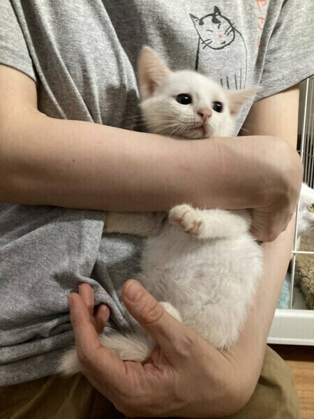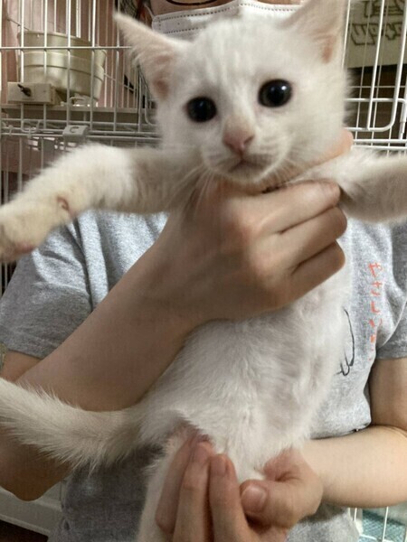 | 特徴(性格など) | ◆ちねんちゃん 穏やかでマイペースな白猫の女の子 ●月齢の小さな子猫は、以下の条件についてご了承の上で応募をご検討下さい。 ◆お留守番の少ないご家族、 ◆横浜市青葉区内もしくは近郊にお住いのご家族、を希望します。 ◆2匹でお迎えくださるご家族を優先いたします。 ◆小さなお子様のいるご家庭は状況によりお断りする場合がございます。 ◆高齢者のみのご家族からの子猫のお申し込みはお受けしていません。 ○沖縄県内にて、道路の真ん中にいたところを保護されました。 ○推定2ヶ月くらい(2022年6月中旬時点)の白猫の女の子です。体重は700g(2022年6月4日時点)です。 ○しっぽは長くて真っ直ぐです。 ○穏やかでマイペース。 ○他の猫とは仲良くできますが、人にべったりという感じではないです。 ○元気にすくすく育っています。 ○まだ小さな仔猫のため、お留守番の少ないおうちをお待ちしております。 ★ワクチン1回接種済み。 ★猫エイズ、猫白血病ともに陰性。 ★不妊手術は成長と体調を見て実施予定です。 ◯YouTubeにも動画をあげています。こちらもご覧下さい。 「ちねん」 https://youtu.be/fHfaeMMUWRQ ○6/26(日)開催の譲渡会に参加予定! 下の要項をお読みいただき、ぜひ会いに来てください♪ ☆★☆★☆★☆★☆★☆★☆★☆★☆★☆★☆ 6月26日(日)荏田にて譲渡会開催! ◎場所・・「島忠 荏田店」 神奈川県横浜市青葉区荏田西1ー3ー14 田園都市線「江田」駅より徒歩約7分 246号線江田駅交差点そば ◎日程・・6月26日(日)(雨天決行) ◎時間・・13時から16時 【15時30分受付終了】 (会場に利用可能な無料駐車場がございます。そちらをご利用くださいませ。) 今回はコロナ対策のため、制限を設けての開催となります。 *3密対策のため、当日12時30分より整理券を配布いたします。 *各回15分 *各回先着3組様 *参加の際は、マスクの着用、アルコール消毒のご協力をお願いいたします。 *当日は検温の上、体温が37度以上の方はご参加いただけません。 *混雑状況により、中止させていただく場合がございます。 ※参加予定の犬猫は体調により参加できない場合があります。ご了承ください。 ☆★☆★☆★☆★☆★☆★☆★☆★☆★☆★☆ |