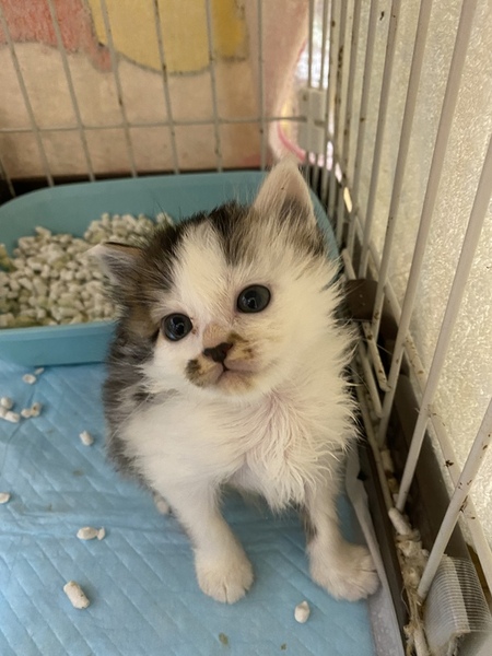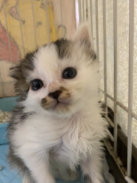 | 特徴(性格など) | 毛が長くふわふわで毛先がシルクのような手触りです。 飼い猫猫(洋猫)とmixでキレイめな猫ちゃんです。 現在はウェットフードとミルクをお皿で少量づつ1日に複数回与えています |