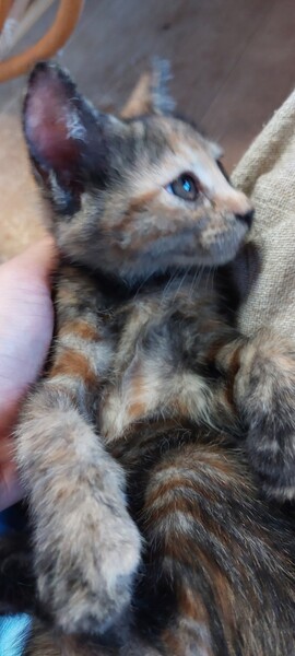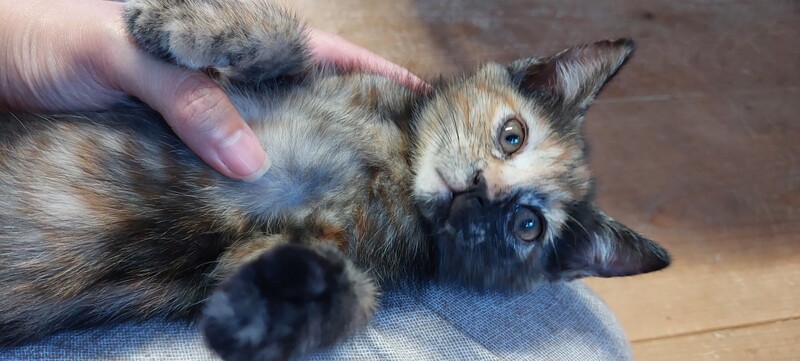 | 里親募集する理由 | 知り合いの方が保護していた去勢避妊手術しようとしてた矢先脱走され、子供できてしまったようです。 人馴れして居ますが、まだ子猫なので、先住猫さん居た方が良いかと思います。 | ||