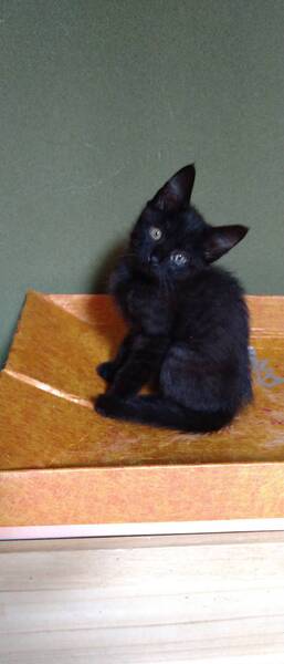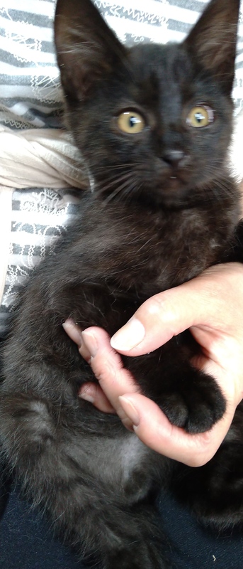 | 特徴(性格など) | 少し人見知りでしたが、今では慣れてそばまで来てくれる甘えん坊な黒猫の男の子です。黒猫ですが、よく見るとトラ柄があります。猫風邪がひどかったですが、順調に回復しています。 | ||