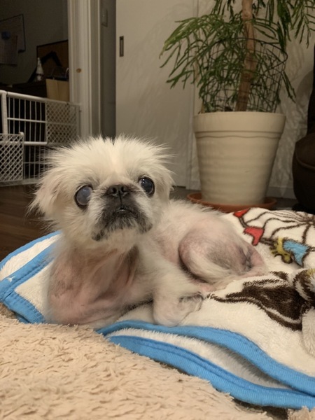 | 特徴(性格など) | とても甘えん坊の構ってちゃんです。 一人より、仲のいい先住犬がいた方が良いかもしれません。 保護当初 皮膚の状態が悪く、こまめなシャンプーと投薬で改善してきてます。 毛も生えてきました。 今後もこまめなシャンプーと、良質なフードを続けて欲しいと思います。 目は白い状態です。 少しだけ視力はあるかもしれませんが ほぼ見えてません。 それでも生活には問題なく 元気に遊びまわってます。 【体重】 2.9キロ 【ワクチン】 混合ワクチン: 8種 【狂犬病ワクチン】受け渡し後接種してください 【血液検査】 異常無し 【便検査】 異常無し 【ノミ・ダニ】 異常無し 【耳】 異常なし 【フィラリア】 陰性 【不妊手術】 済み 【マイクロチップ】済み |