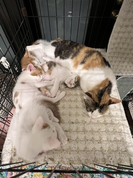| 里親募集する理由 | 妊娠中に保護された母猫さんが保護宅で出産しました。 お母さん猫もまだ若いようです。 保護主も投稿している私も高齢のため、終生みてあげることができません。 どうぞよろしくお願い致します。 |