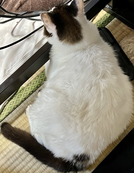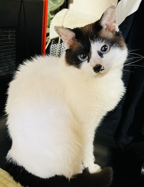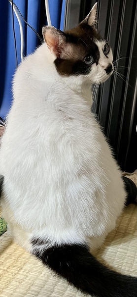 | 特徴(性格など) | 白い体の綺麗な青い目をした体の大きな猫ちゃんです。 ちょっと怖がりなところがあります。 お姫様気質で嫌な事には、はっきりと綺麗な高い声を出してにゃーと意思表示します。 トイレは綺麗好きで、自分のものをキチンと砂をかけて処理をします。 尻尾をピーンと立てて歩く姿は自信満々なのですが、ガニ股です。笑 そのかわり、顔が小さいので子猫と間違えられますが、体は本当に巨大で存在感は女王様です。 |