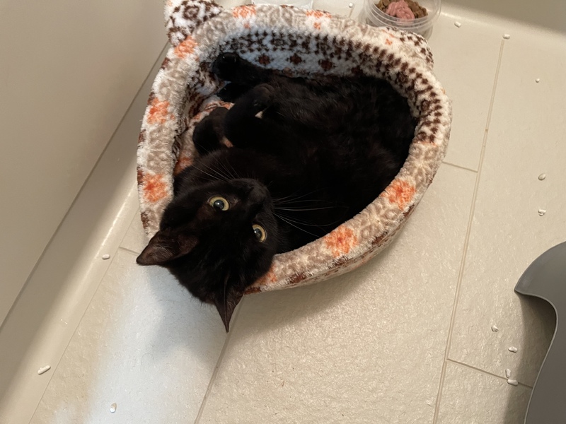 | 特徴(性格など) | 黒猫、少し白髪あり、腹部に白い箇所あり とても人懐っこく、大人しい子です。 |