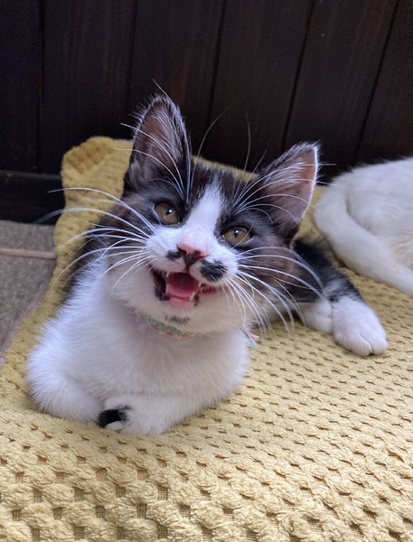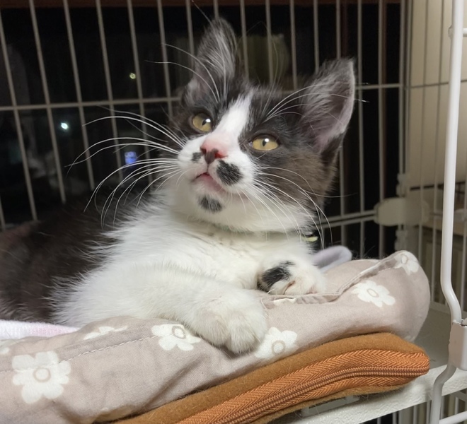 | 特徴(性格など) | ?ノミダニ駆除済 ?便検査済 ?エイズ、白血病陰性 ?ワクチン接種済 今現在健康状態問題なし。 猫の特徴など ハチワレ中毛の中尻尾 口周りのお髭模様がチャームポイントです。 ご飯をモリモリ食べています。便も問題なしです。 新しいモノや環境には少し慎重なところがあり少し控えめな性格ですが、慣れるのも早く心をゆるしたら思いっきり遊びます。 いつもゴロゴロのどを鳴らして、お膝に乗ったり人間の後をついてきます。遠くからでも名前をよんだらお返事をしてこちらに来ます。 |